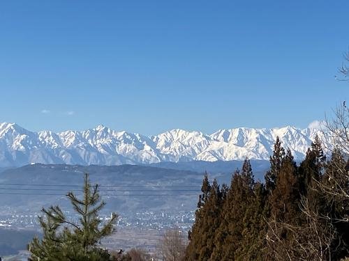 【写真:長野市松代町の皆神山頂から見る北アルプス/29日】