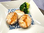 2025/12/12 レンコン肉詰め揚げ 12/12 レンコン肉詰め揚げ ★材料 1人分 レンコン(中)4cm 鶏ひき肉60~70g 片栗粉適量 揚げ油適量 溶き辛子適量 醤油適量 酢適量 1.レンコンは皮ごと1cm強の厚さに切る。 2.レンコンの穴の中にひき肉を詰める。余分なひき肉はバターナイフなどで取る。 3.片栗粉を全体にたっぷりとつける。 4.フライパンに半分浸かるくらいの量の油を入れ、180℃で2分30秒~3分、色よく揚げる。 5.辛子醤油を作り、添えて頂く。