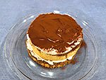 5.もう1枚のスポンジをのせ、コーヒーシロップを同様にたっぷり塗り、残りのクリームを全体に広げる。