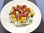 2026/04/17 ホタルイカのちらし寿司 04/17 ホタルイカのちらし寿司 ★材料 2人分 卵1個 砂糖小さじ1 塩少々 サラダ油小さじ1 ホタルイカ10杯 すし酢大さじ1 ご飯1合(320g) すし酢大さじ2 かき菜(茹で)2株 甘酢漬けショウガ20g 白ゴマ大さじ1 1.卵、砂糖、塩をよく混ぜ、フライパンにサラダ油を入れ、熱したフライパンに入れ細かな炒り卵を作る。 2.ホタルイカはくちばし、目、軟骨をとり、すし酢に絡めておく。 3.ご飯にすし酢を混ぜかき菜(細かく切る)、甘酢漬けショウガ(細かく切る)、白ゴマを混ぜる。 4.器に3を盛り、炒り卵を全体に広げ、ホタルイカを飾る。