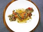 2021/04/19 焼きサケの野沢菜漬けソース 04/19 焼きサケの野沢菜漬けソース ★材料 2人分 生鮭2切れ 酢大さじ2 塩適量 オリーブ油大さじ5 野沢菜漬け(みじん切り)大さじ2 しば漬け(みじん切り)大さじ2 タマネギ(みじん切り)大さじ1 ゆで卵(裏ごし)1個 ミニトマト(くし切り)2個 パセリ(みじん切り)大さじ1 1.ボールに酢、塩、オリーブ油を軽く混ぜ、野沢菜漬け、しば漬け、タマネギ、ゆで卵、ミニトマト、パセリの順にボールに入れ、混ぜ合わせる。 2.鮭(好みで塩をふる)をソテーし、皿に盛り付け、1のソースをかける。