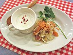 2.調味料をボウルで混ぜ合わせ、そこにタマネギとスモークサーモンを加えて和える。 ※スモークサーモンは大きい場合は半分に切る。 ※1時間ほど冷蔵庫で冷やすと味がなじみ、一層美味しくなる。