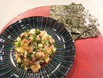 2022/04/05 アジとたくあんのなめろう 04/05 アジとたくあんのなめろう ★材料 2人分 アジ1尾 細ネギ1本 ショウガ1/2片 青じそ3枚 みそ大さじ1 しょう油小さじ1 たくあん30g 焼き海苔2枚 1.アジは粗みじん切りし、包丁でたたく。 2.細ネギ、ショウガ、青じそを加え混ぜる。 3.みそ、しょう油を加え混ぜ、たくあんを合わせる。 4.皿に盛り、1/4に切った焼き海苔を添える。