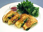7.4等分に切り、お皿にグリーンリーフ、ケチャップと盛り合わせる。