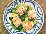 2023/12/05 レンジ蒸しえび豆腐 12/05 レンジ蒸しえび豆腐 ★材料 2人分 豆腐150g 片栗粉適量 えび8尾 鶏ひき肉50g 長ネギ(みじん切り)1/3本 塩・コショウ少々 ショウガ(すりおろし)1/3片 片栗粉小さじ1 白菜(ざく切り)1枚 小松菜(4cm)1株 醤油大さじ1 練りからし小さじ1/2 1.豆腐をキッチンペーパーに包み水切りをする。 2.えび4尾は粗みじん切りにし、残り4尾は飾り用にとっておく。 3.豆腐を4等分し、真ん中にくぼみをつけ、片栗粉をふる。(除いた豆腐は肉だねに入れる) 4.ビニール袋に除いた豆腐、えび、鶏ひき肉、ネギ、塩・コショウ、ショウガ、片栗粉を入れよく揉む。 5.豆腐の上に肉だね、えびをのせる。 6.皿に白菜を敷き、豆腐を並べ、ラップをして電子レンジ(600W)で5分加熱する。 7.醤油にからしを溶き、6にかける。