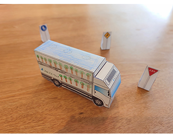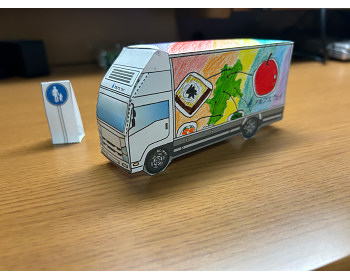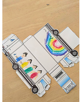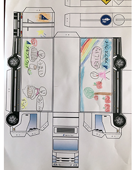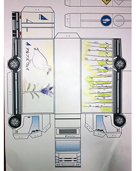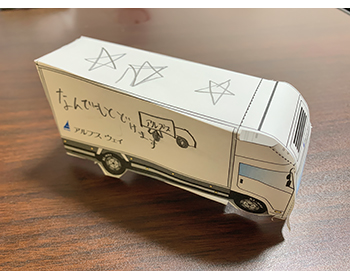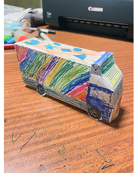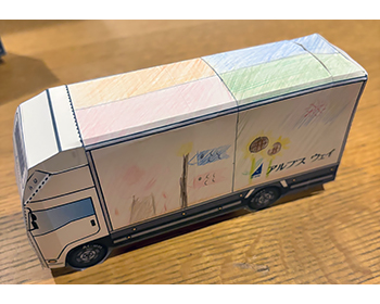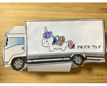絵を描くのが難しかったけど、綺麗に上手に描くことができて嬉しかった。自分の絵が本当にトラックで街を走ることを想像しながら描きました。