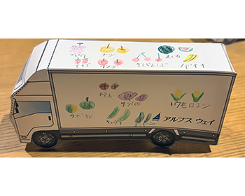 長野のトラックなので、りんごの絵を描いてみました。切り取った後、のりではるのが少し難しかったです。