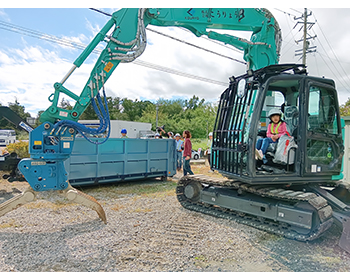 重機で木やタイヤやコンクリートをつかんで運ぶのを見たり、重機に乗ることができて楽しかったです!安全の大切さがよくわかりました。