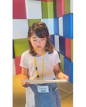 言葉がもっとしれそうな感じがして、とても楽しかった。アナウンサーの体験をして、恥ずかしかったけど、頑張れました。ありがとうございます。