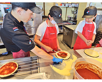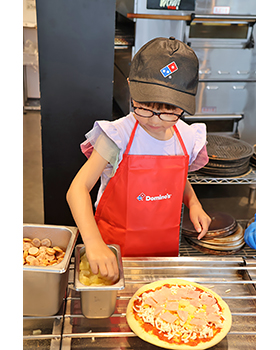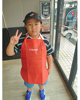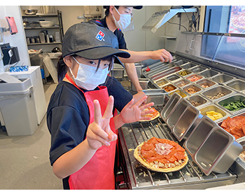 ピザ作りは初めてで、上手くできるかわからなかったけれど、ドミノピザの人たちが生地の広げ方を教えてくれて、手伝ってくれました。そのおかげで自分好みのきれいで美味しいピザを作ることができました。今回のピザ作りをしたことによって、将来の夢について考えることができました。また機会があったらドミノピザでピザ作りをしたいです。