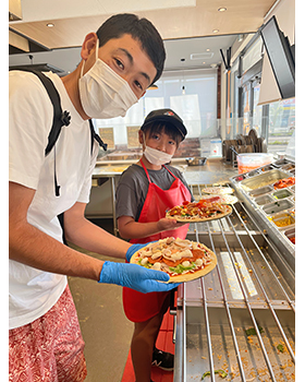 難しかったけど楽しかった。ピザを作りながら、普通ならお客さんの相手もするんだと思うと大変だなと思った。
