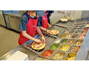 ピザのトッピングが楽しかったです。自分で作ったピザはすごく美味しかったです