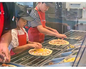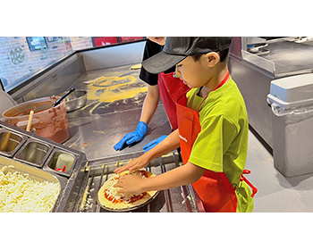 自分でトッピングをきめて、ピザ作りできて楽しかったです。大きなれいぞうこにも入ってみました。またやってみたいです。