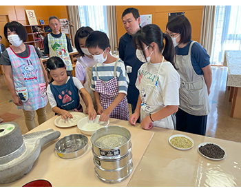 そばの実の黒いところがけずられているものが、黒い色のそばになることが知れました。石臼が引けて楽しかったです。ガレットが作れておいしく楽しくできてよかったです。