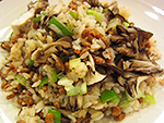 2.フライパンにごま油を入れ、納豆・ごはん・裂いたマイタケ