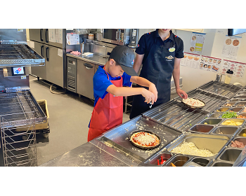 ピザ作りは、好きなトッピングを選ぶことができて楽しかったです。そして自分で作ったピザはとても美味しかったです。レジをやらせてもらえたのも楽しかったです。レジの中にはこんなにお金が入っているんだなと思いました。おつりを渡すことができて嬉しかったです。