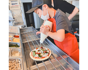 難しかったけど楽しかった。ピザを作りながら、普通ならお客さんの相手もするんだと思うと大変だなと思った。