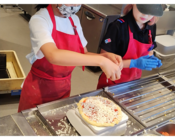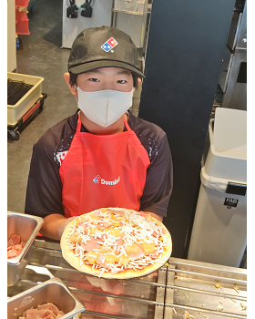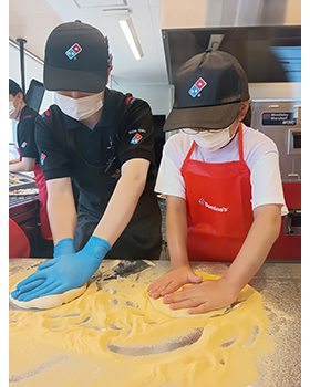 ピザ作りは初めてで、上手くできるかわからなかったけれど、ドミノピザの人たちが生地の広げ方を教えてくれて、手伝ってくれました。そのおかげで自分好みのきれいで美味しいピザを作ることができました。今回のピザ作りをしたことによって、将来の夢について考えることができました。また機会があったらドミノピザでピザ作りをしたいです。