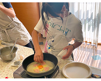 私は今日おしごと体験をやって、楽しかったことはガレット作りです。ガレットとはフランスで生まれたクレープのようなものでクレープにとても似ていますが小麦粉ではなくそば粉て作られているようです。私はごはん系のと、デザート系のガレットを作りました。ごはん系は、卵とハムとチーズを乗せてやきました。デザート系は、クレープの様に生クリームとジャムを乗っけて作りました。クレープとは違ってガレットはそば粉が関係しているのかは分かりませんが、クレープとは違生地じたいがわりと甘くないのでもたれずに食べることができました。ほかにも作り方をしらべたりしてみたいと思いました。